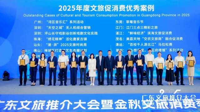 在开幕式当天举办的2025年广东文旅推介大会暨金秋文旅消费季启动仪式上,江门选送的《江门三点三精彩之旅》被评为广东促文旅消费优秀案例。