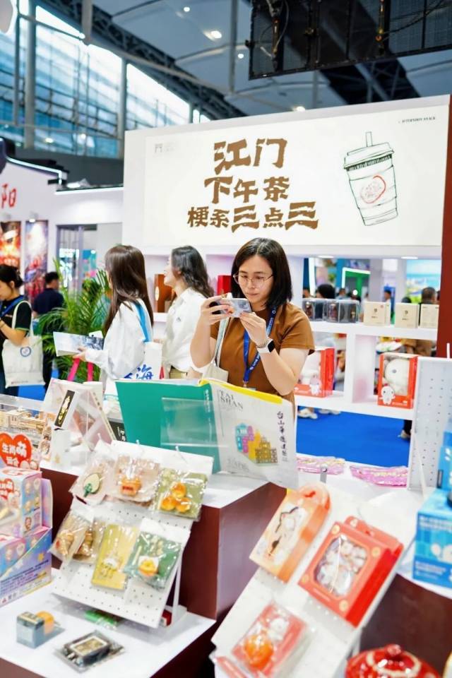 文旅手信展销区同样热闹非凡。琳琅满目的文创产品让侨乡特色传统文化“活”了起来,成功吸引了国内外众多参展人员和客商的目光。