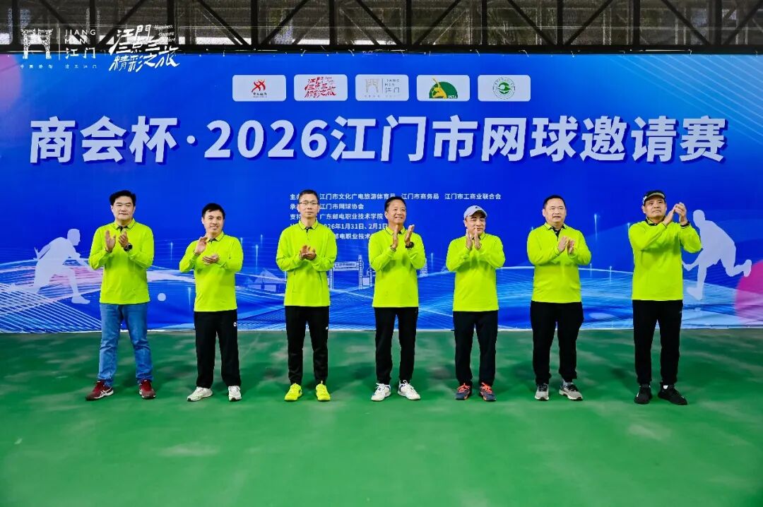 1月31日,为期两天的商会杯·2026江门市网球邀请赛在广东省邮电职业技术学院江门校区开幕。赛事由江门市文化广电旅游体育局、江门市商务局、江门市工商业联合会联合主办,江门市网球协会承办,共有17个商会、协会组队参加,160多名选手在常青组、青年组的男子双打、女子双打、混合双打中展开激烈角逐。