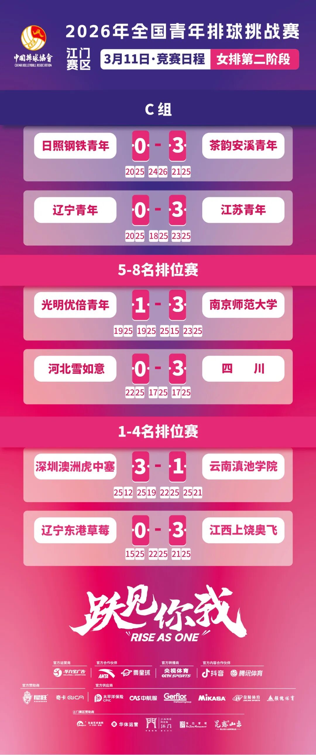 随着3玥11日最后一场比赛终场哨响,本次赛事决赛阶段的所有对阵已全部揭晓!明日,前八名队伍将迎来最终的名次争夺战: