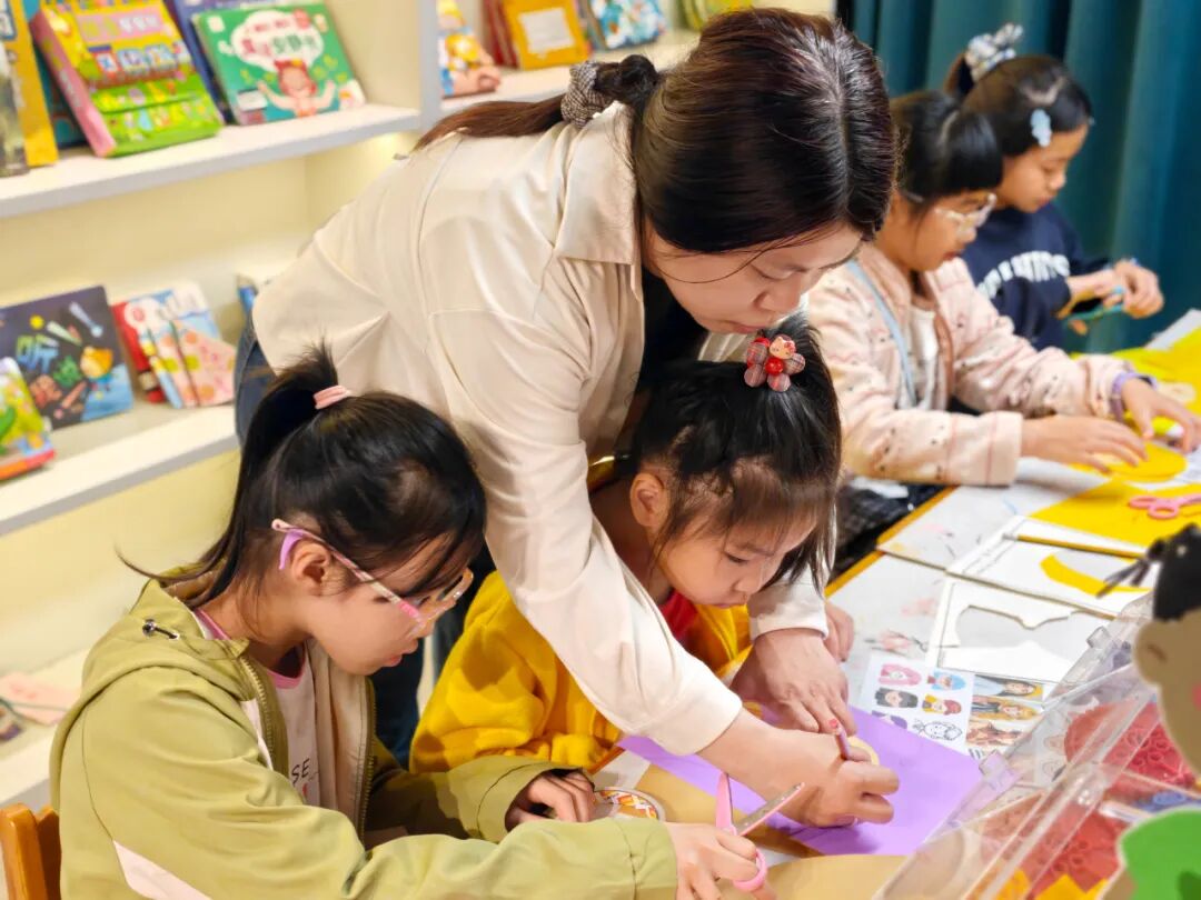 绘本讲述结束后,我们迎来了趣味的手工创作环节。文化志愿者老师引导孩子们动手绘制“我心中的发型”,孩子们充分发挥想象力,用五彩的画笔勾勒出属于自己的创意发型,家长们在一旁协助,陪伴孩子完成作品,在动手实践中增进亲子感情,也让孩子们更加深刻地理解了绘本中“尊重差异、乐于助人”的道理。