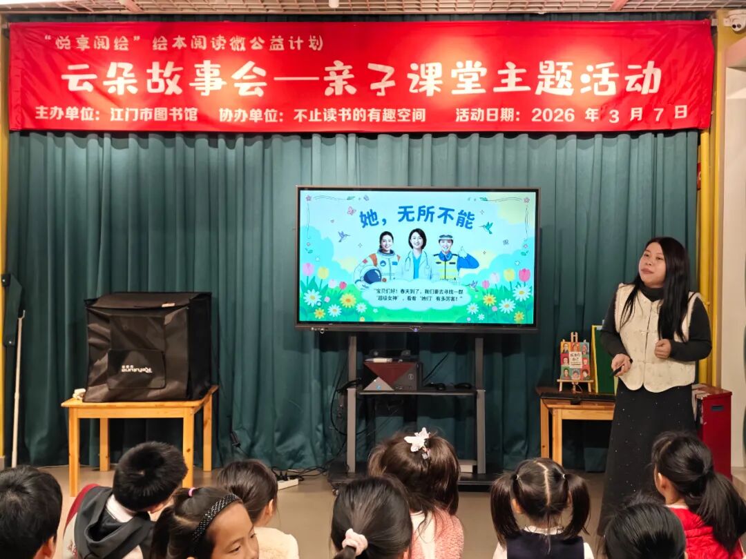 春和景明,书香致远。三月的风裹挟着暖意与诗意,江门市图书馆“云朵故事会”如期赴约,以绘本为媒,以陪伴为翼,接连开展多场主题活动,为大小朋友们搭建起温馨的阅读乐园,用一段段温暖故事、一次次趣味互动,定格春日里最动人的书香瞬间,让阅读的种子在童心深处悄然扎根、向阳生长。